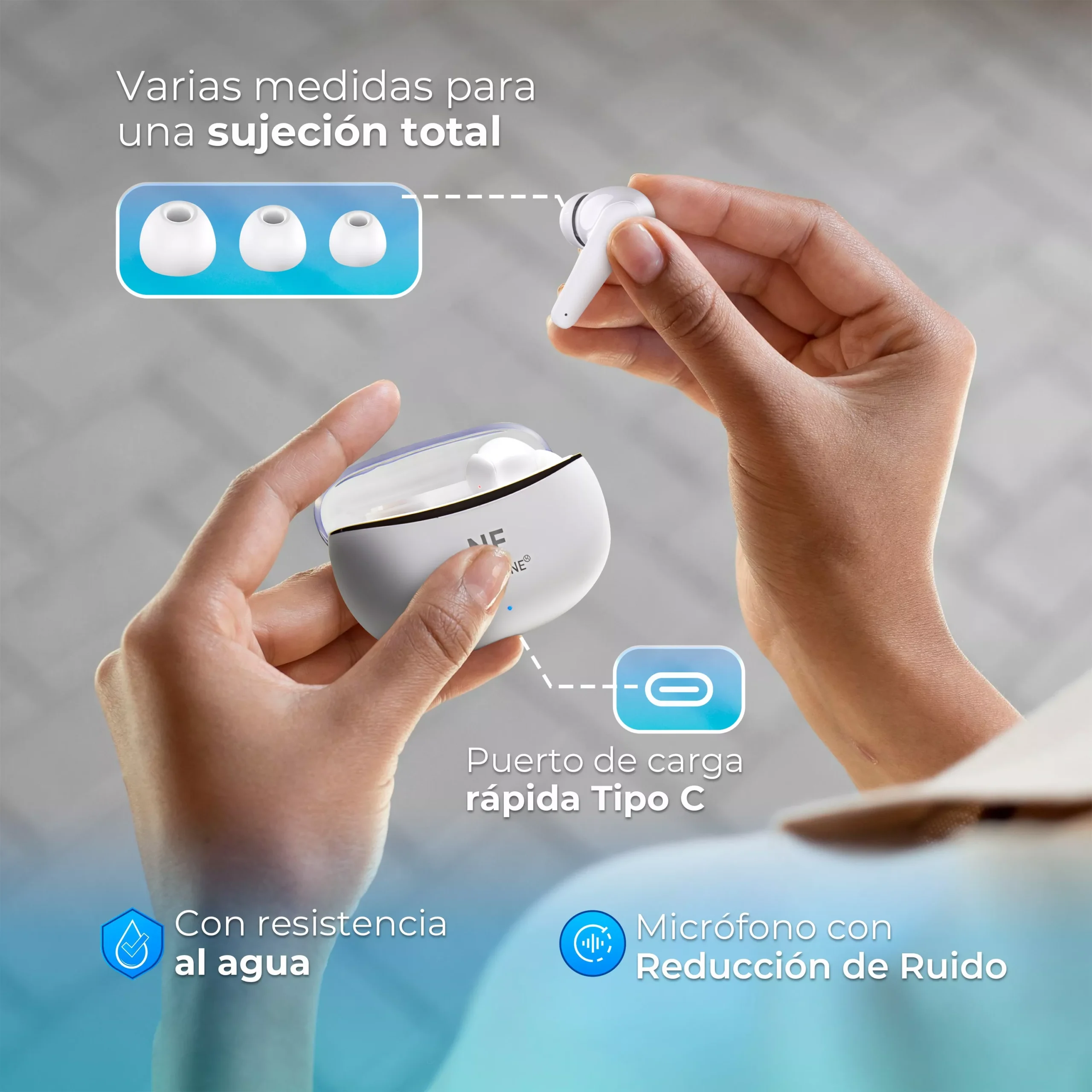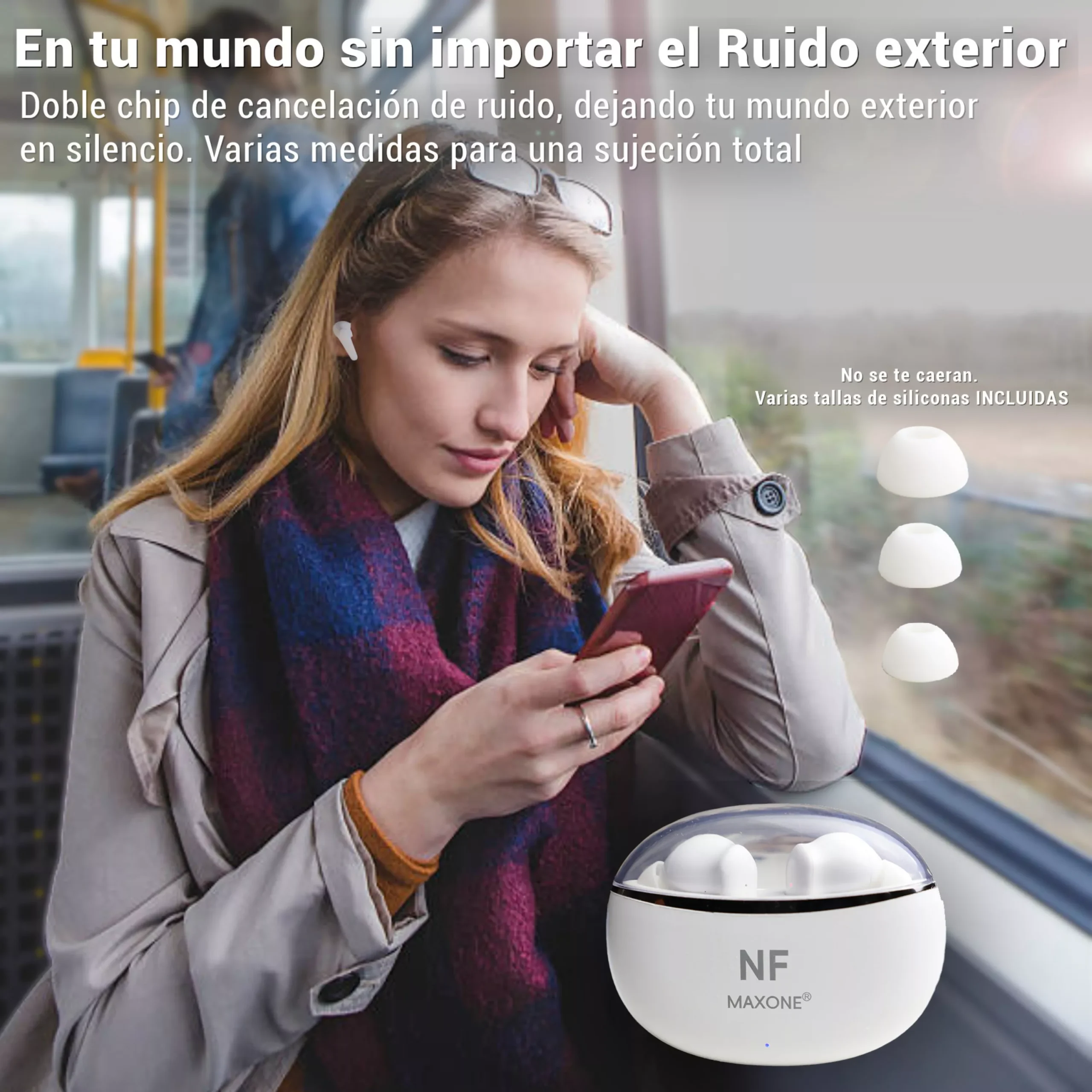 🎧SE ADAPTAN A TU OREJA 🎧 Los Auriculares Bluetooth Inalámbricos traen 3 medidas de accesorios de silicona para que se adapten a ti. Con este accesorio, los auriculares no se te caerán, no te apretarán, no te molestarán. Los accesorios de silicona te dan un tacto ligero, sueva y cómodo. Olvídate de ajustarlos, de quitártelos porque molestan.