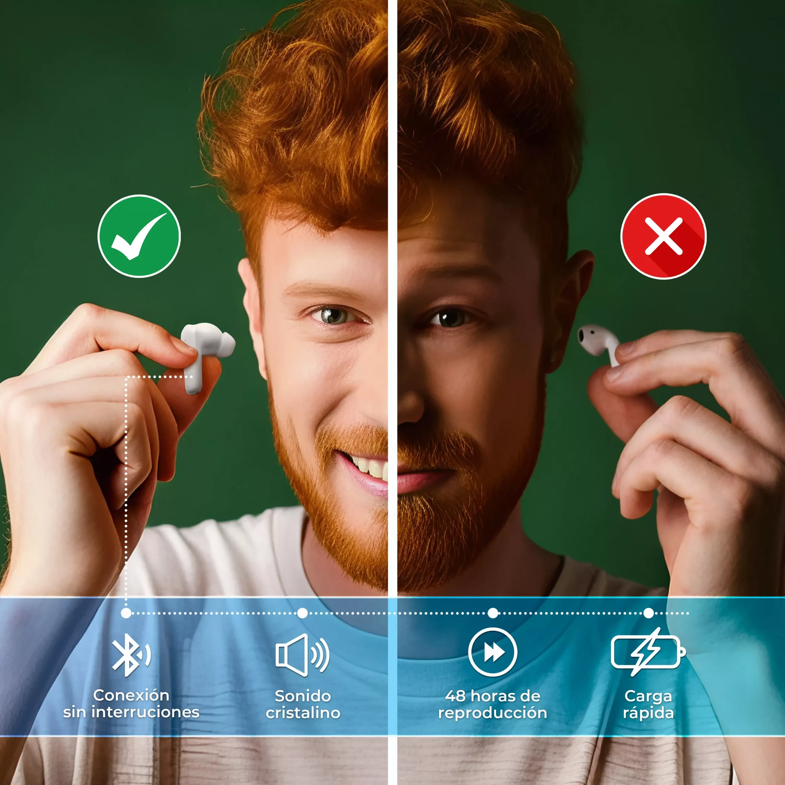 🎧NO ESCUCHARÁS RUIDO DEL EXTERIOR 🎧 Auriculares Inalámbricos Bluetooth con doble chip de cancelación de ruido. Hemos cuidado todos los detalles para que tengas el mejor sonido, la mejor cancelación de ruido y que se adapten bien a tu oreja. Literalmente, no escucharas nada ni a nadie.