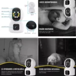Cámara de Vigilancia WiFi Interior de Seguridad – Camara IP Dos Lentes 1080P | VideoCamara Vigilancia para Perros y Bebé, Cámaras Vigilancia Domicilio Wifi con Alarma, Luces, Detección de Movimiento