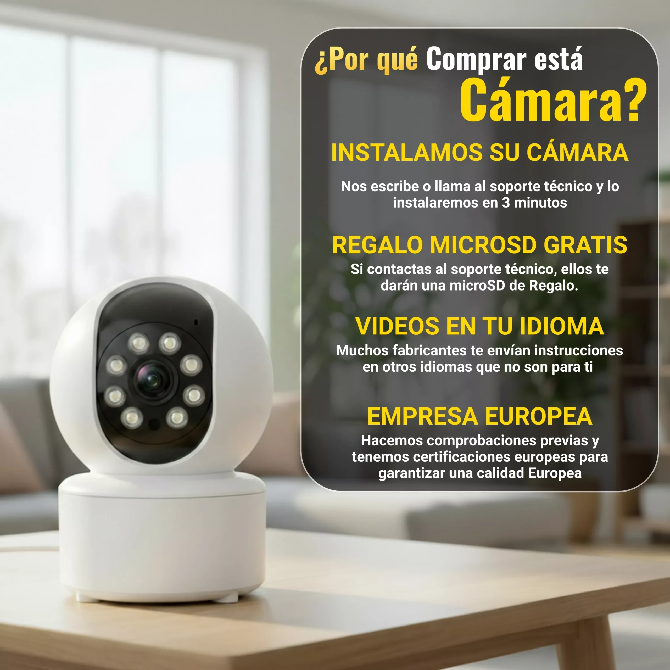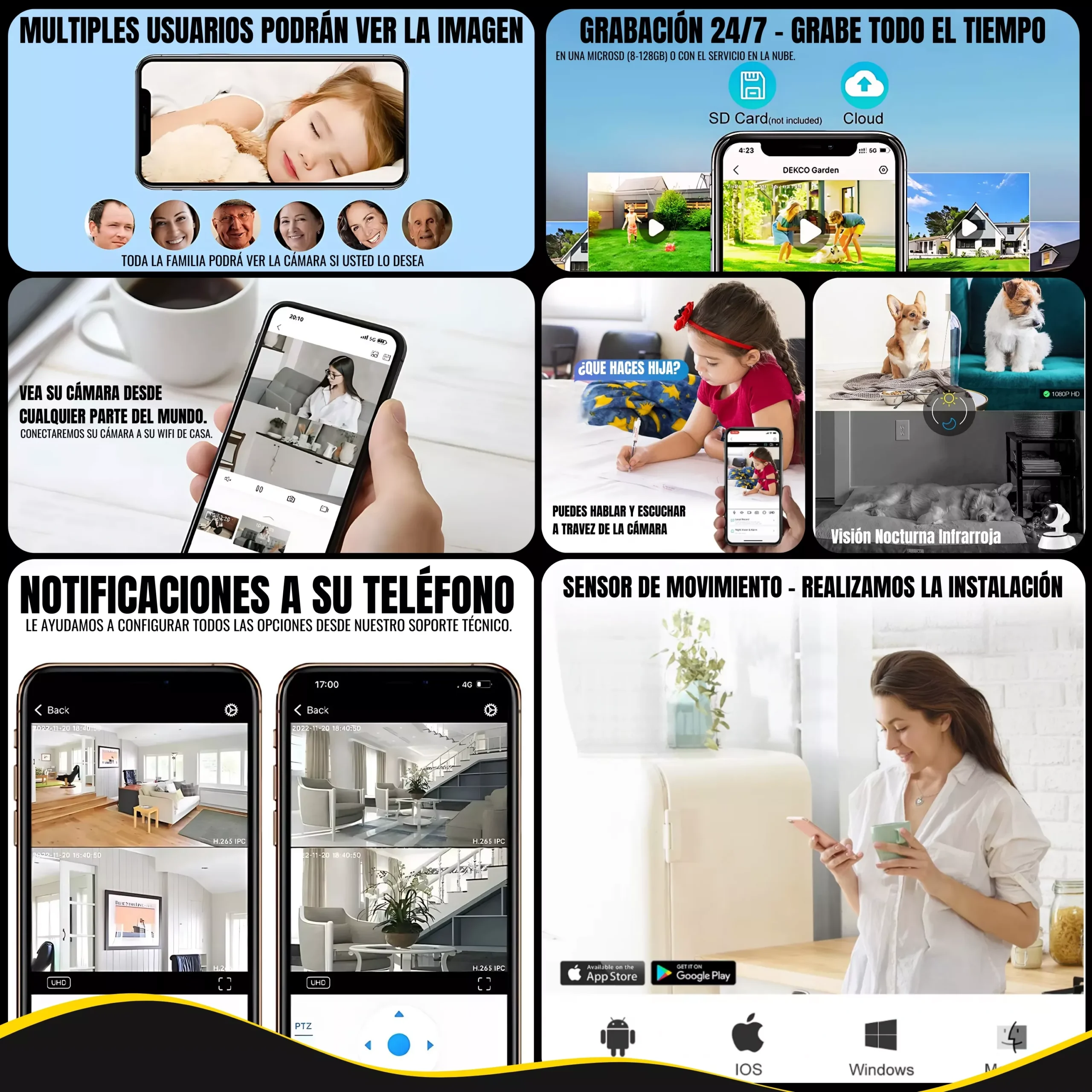 📹 SOPORTE TÉCNICO ONLINE 📹 Como sabemos que instalar una cámara wifi al principio puede parecer difícil; desde nuestra empresa ofrecemos INSTALAR SU CÁMARA JUNTOS. Puede tener la seguridad que podrá configurarla y usarla al 100%. Por favor antes de devolverla nuestro producto, utilice este servicio. TENEMOS MANUALES Y VIDEOS EN SU IDIOMA.