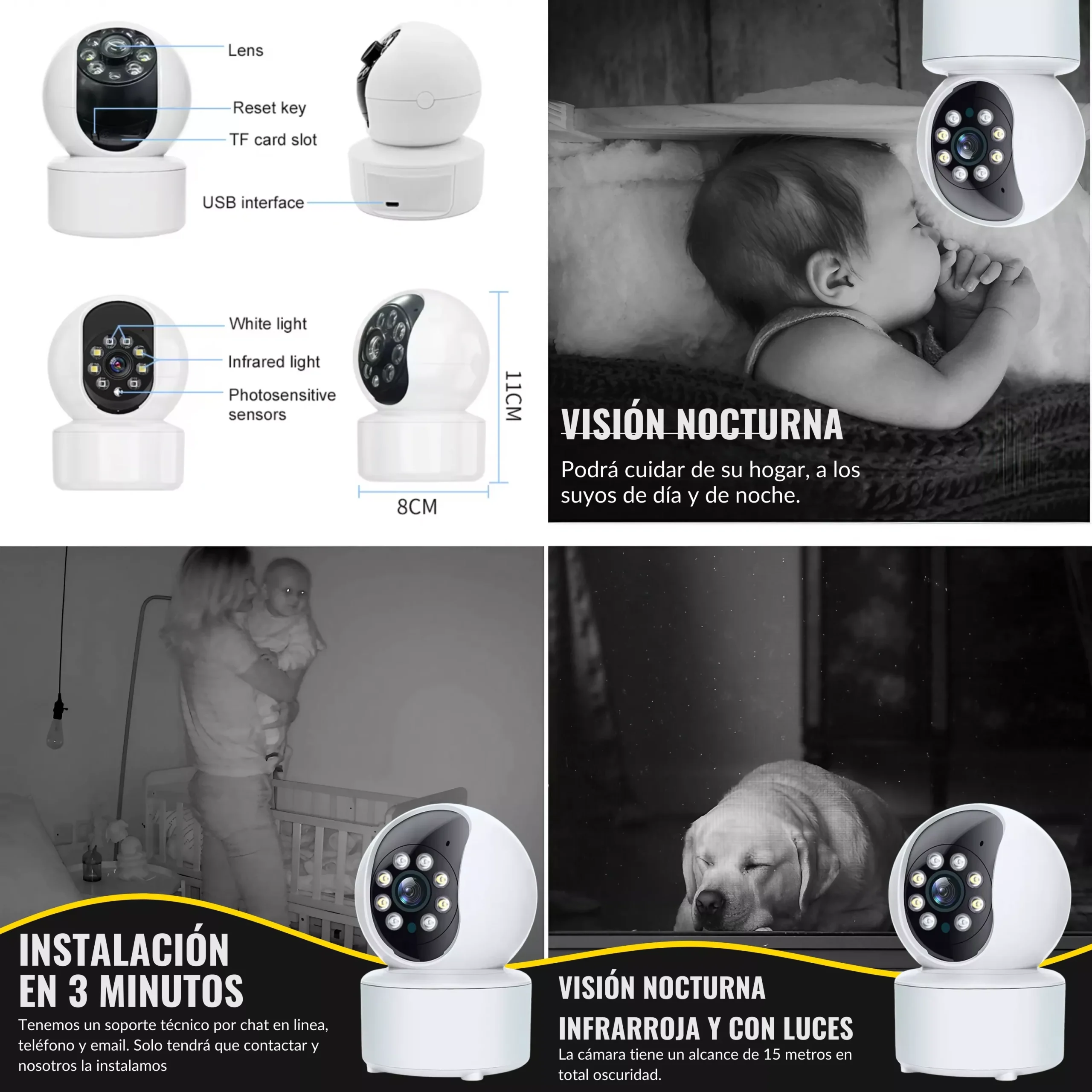 📹 HABLE Y ESCUCHE + 3 MINUTOS DE INSTALACIÓN. 📹 Cuando no podamos estar presente en algún sitio físicamente, podremos hablar y escuchar lo que ocurre al otro lado (el bebe llorando, el perro que se porta mal, una conferencia de trabajo, reuniones). No se preocupe por la instalación de su cámara interior, LA INSTALACIÓN DURA SOLO 3 MINUTOS.
