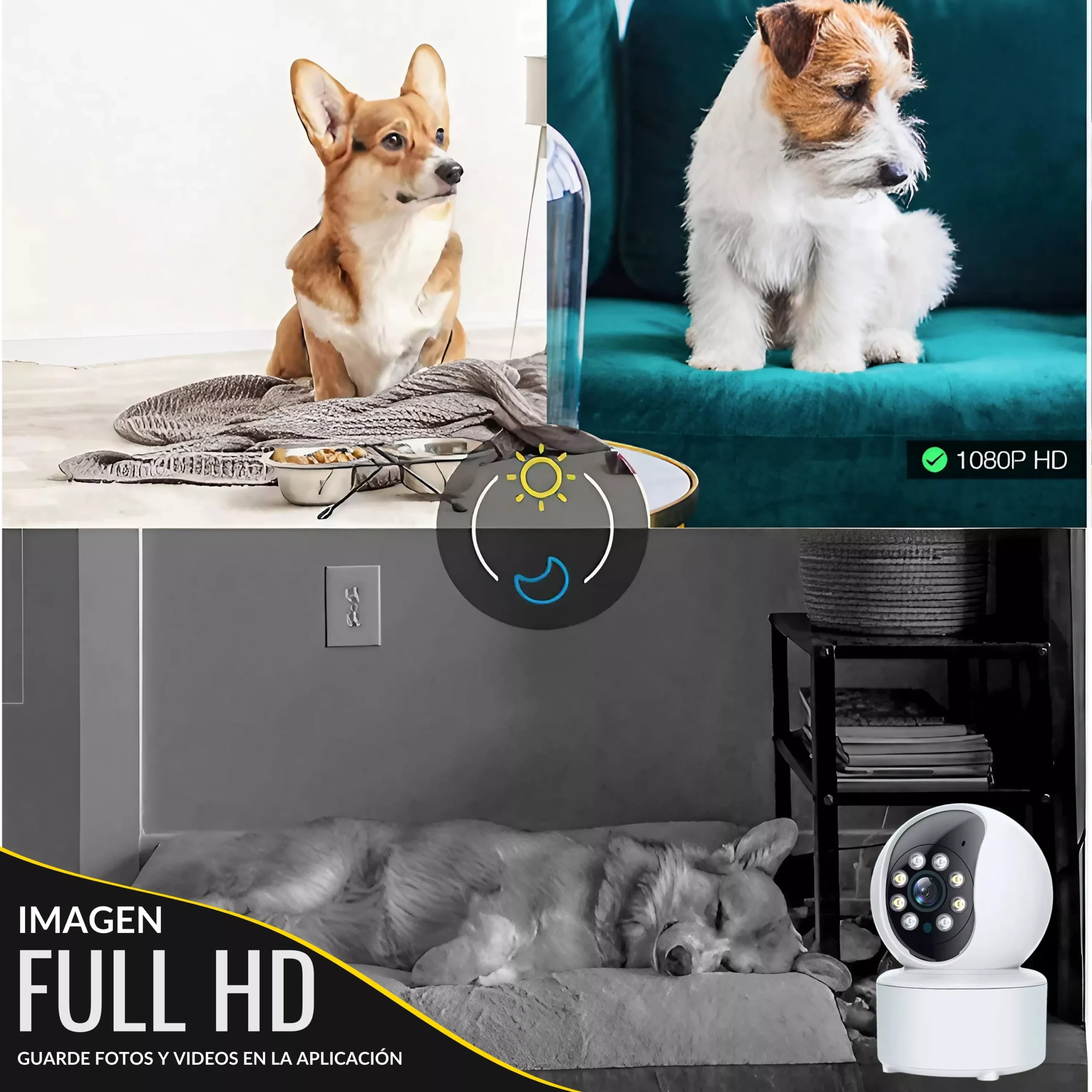 📹 DETECCIÓN HUMANOS Y ANIMALES – GRABACIÓN AUTOMÁTICA 📹 Nuestra cámara interior tienen una imagen full HD aun estando sin luz (misma calidad que una cámara tapo. Tiene detección de movimiento personalizado, para detectar humanos, perros, personas mayores, bebes. Usted podrá ver la cámara vigilancia wifi interior en directo en cualquier momento, recibirá notificaciones al móvil, y grabará automáticamente si se programa en la aplicación.
