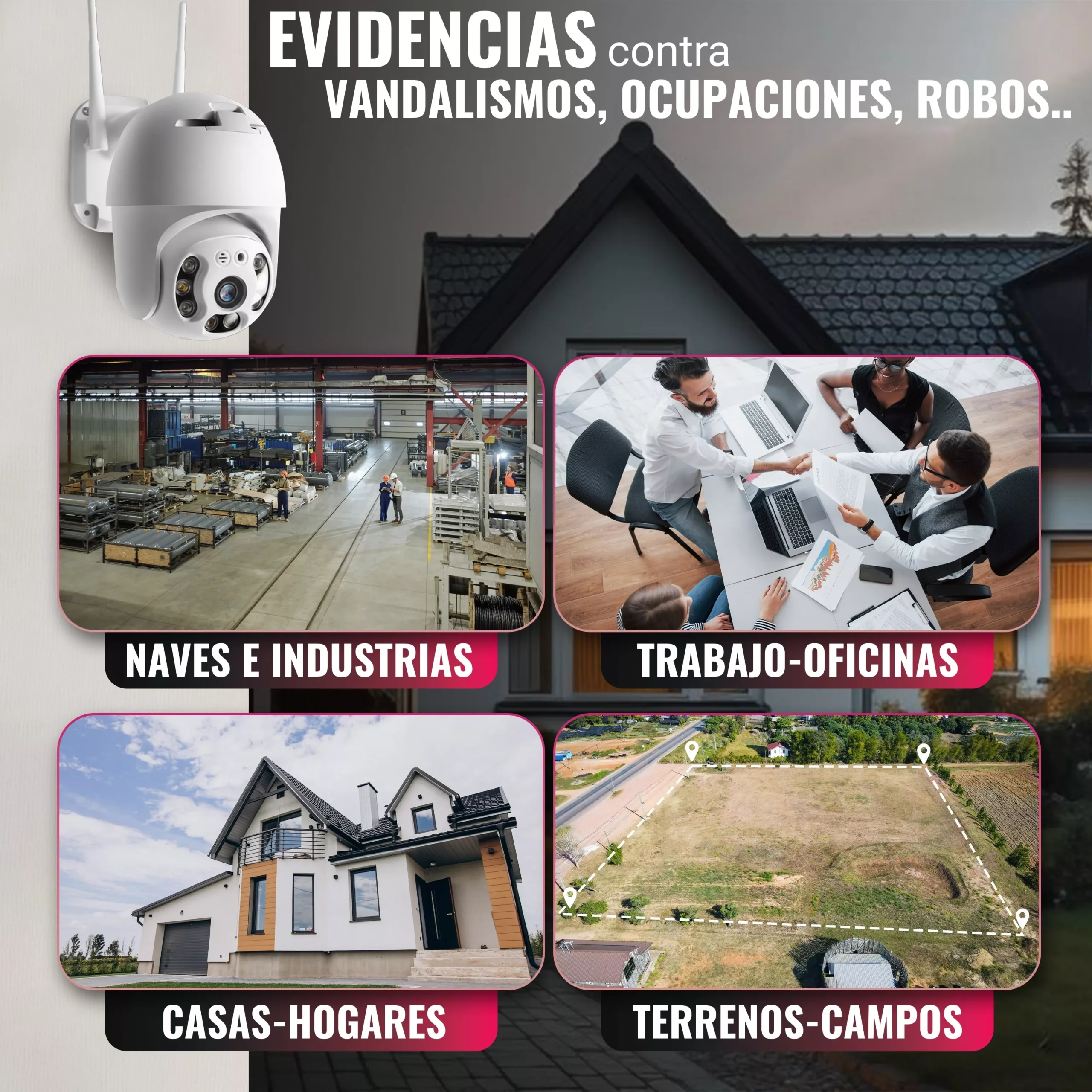 🚨LUCES+ ALARMA = ADIÓS INTRUSOS 🚨 Si las camaras vigilancia domicilio wifi detecta algún movimientos o intruso, activa la alarma y las luces (se configura en la aplicación) haciendo que su casa o propiedad este más segura. Muchas cámaras exteriores no llevan luces ni tampoco alarma. Yo la compraría con luces y alarma.