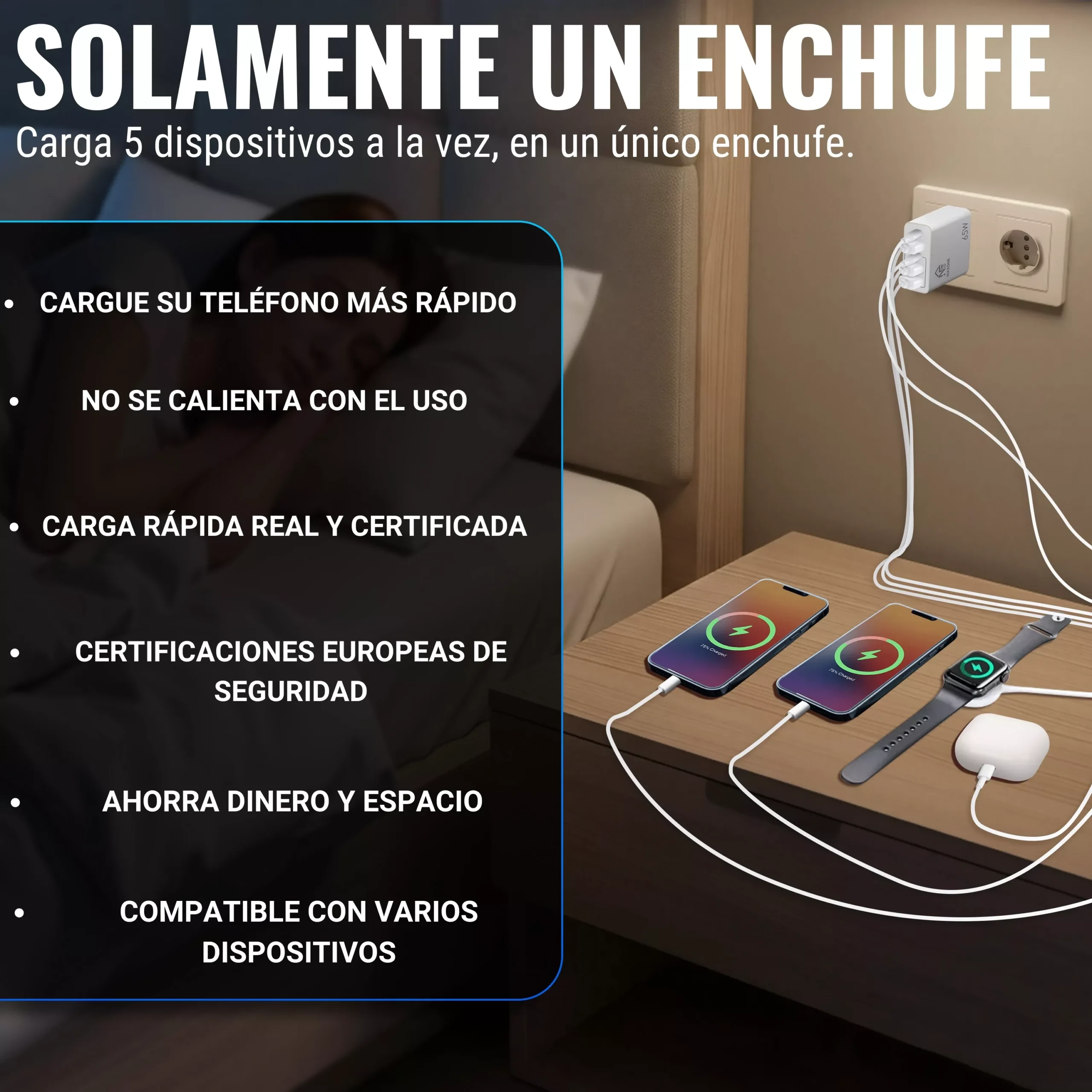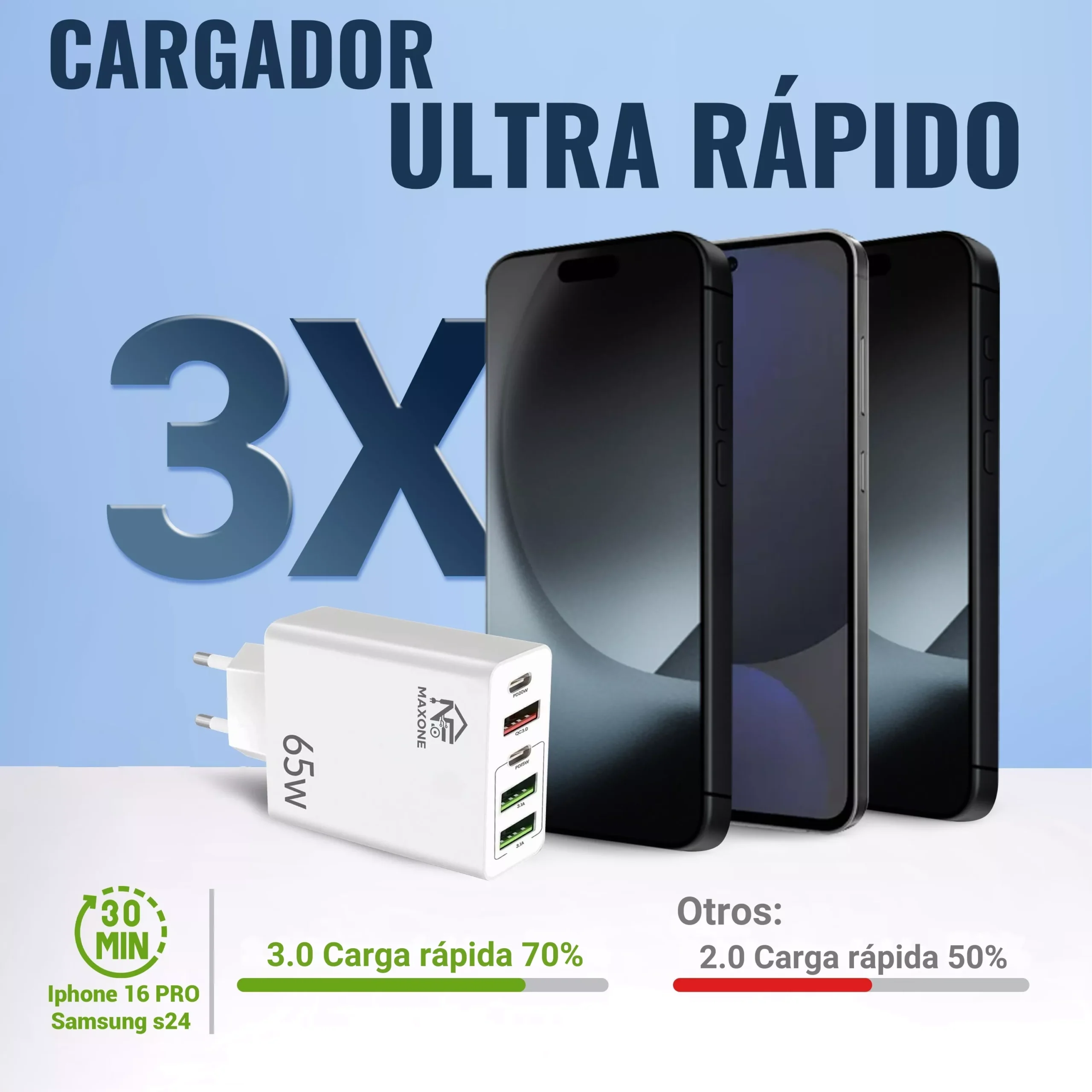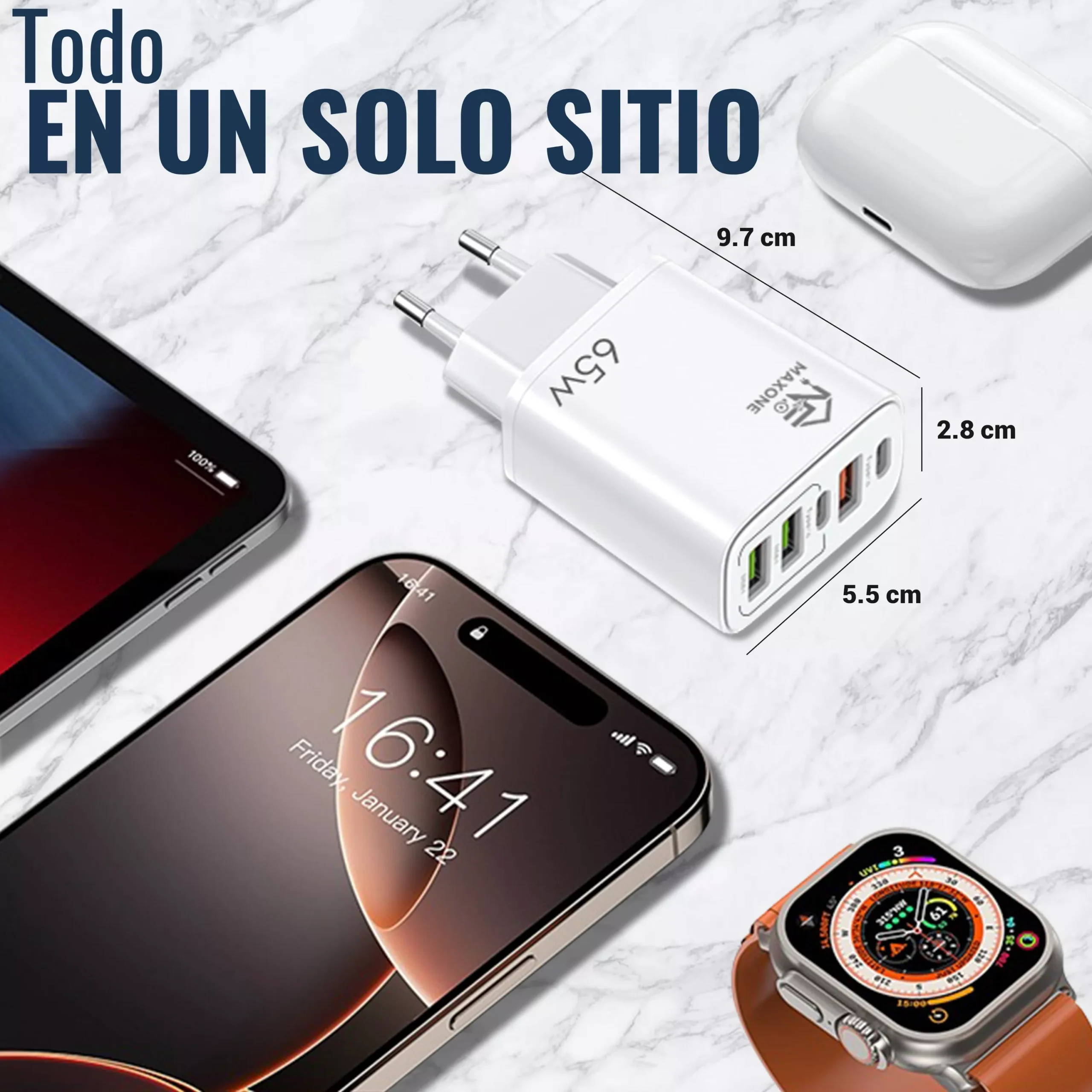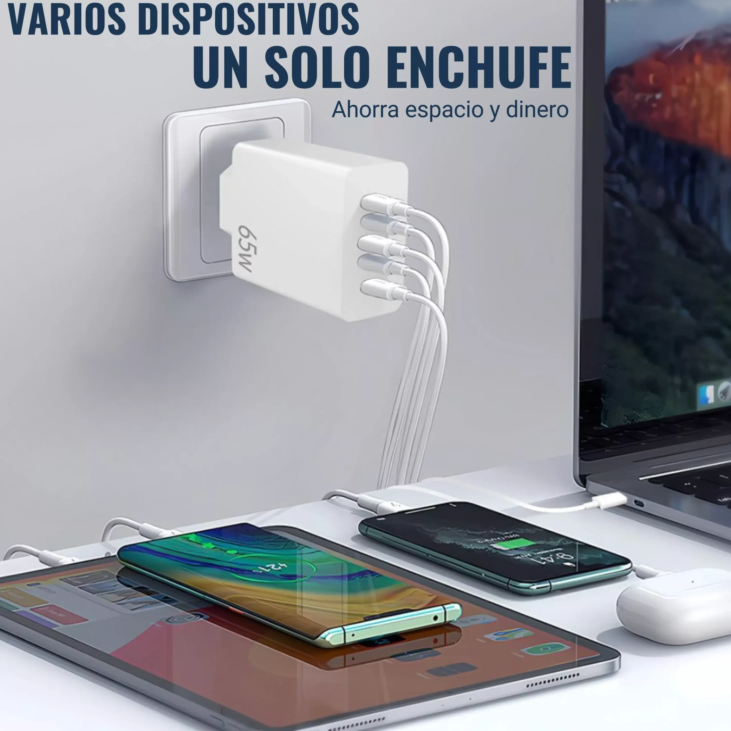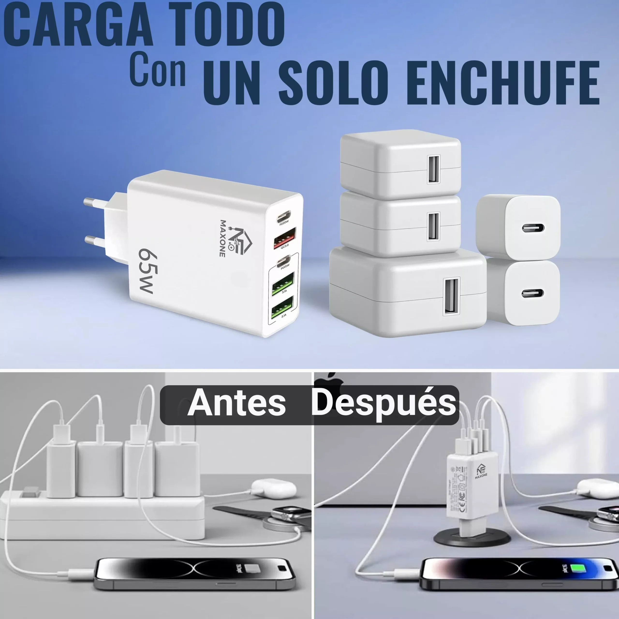 Cargador USB C 65W, Cargador iPhone Carga Rapida Múltiple USBC Enchufe PD+QC Rápido Pared Adaptador Tipo C Movil Cargadors para iPhone 17 16 15 14 13 12 11 Pro MAX Plus,iPad,Samsung USB Charger