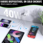 📲 ENCHUFE MULTIPLE GASTE MENOS Y AHORRE ESPACIO 📲 El Enchufe USB C de carga rápida le ayudara a ahorrar dinero y también a ahorrar espacio. Con nuestro Cargador USB de 40w solo necesitará un enchufe para cargar 4 Dispositivos. Compatible con iPhone 16 Pro Max/16 Pro/16 Plus/16/15 Pro Max/15 Pro/15 Plus/15/14/14 Pro/14 Pro Max/14 Plus/13/13 Pro/13 Pro Max/13 Mini/12/12 Pro/12 Pro Max/12 Mini/11/11 Pro/11 Pro Max, iPhone XS/XS Max/XR/X/10/8/8 Plus/7/7 Plus/6/6S/SE, Samsung Galaxy S23/S22/S22+/S22 Ultra/S21+/S21 Ultra/S20 FE 5G/S20/S10/S9/S8/S7, Note 20/10/9/8, Switch, PS5, tabletas, etc.