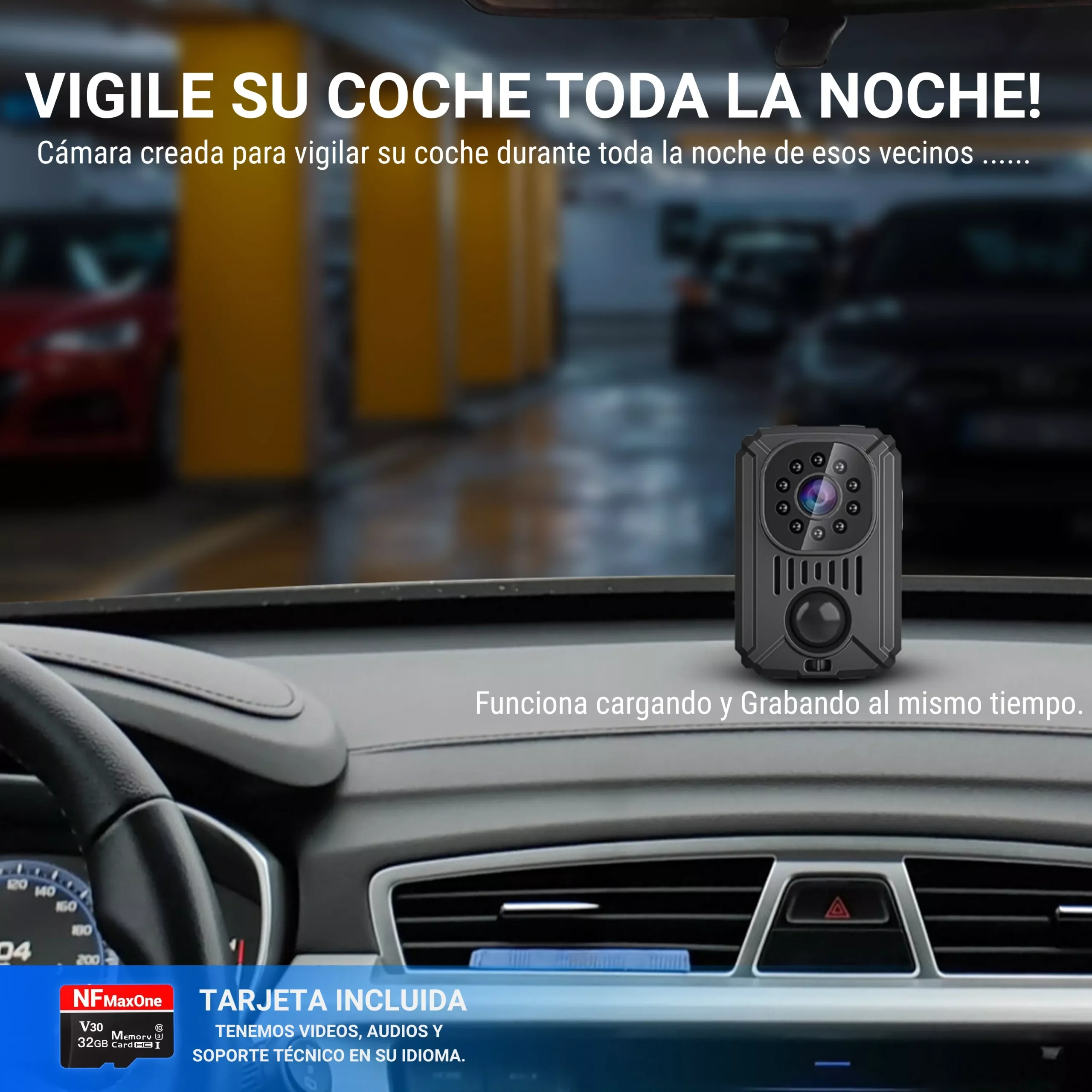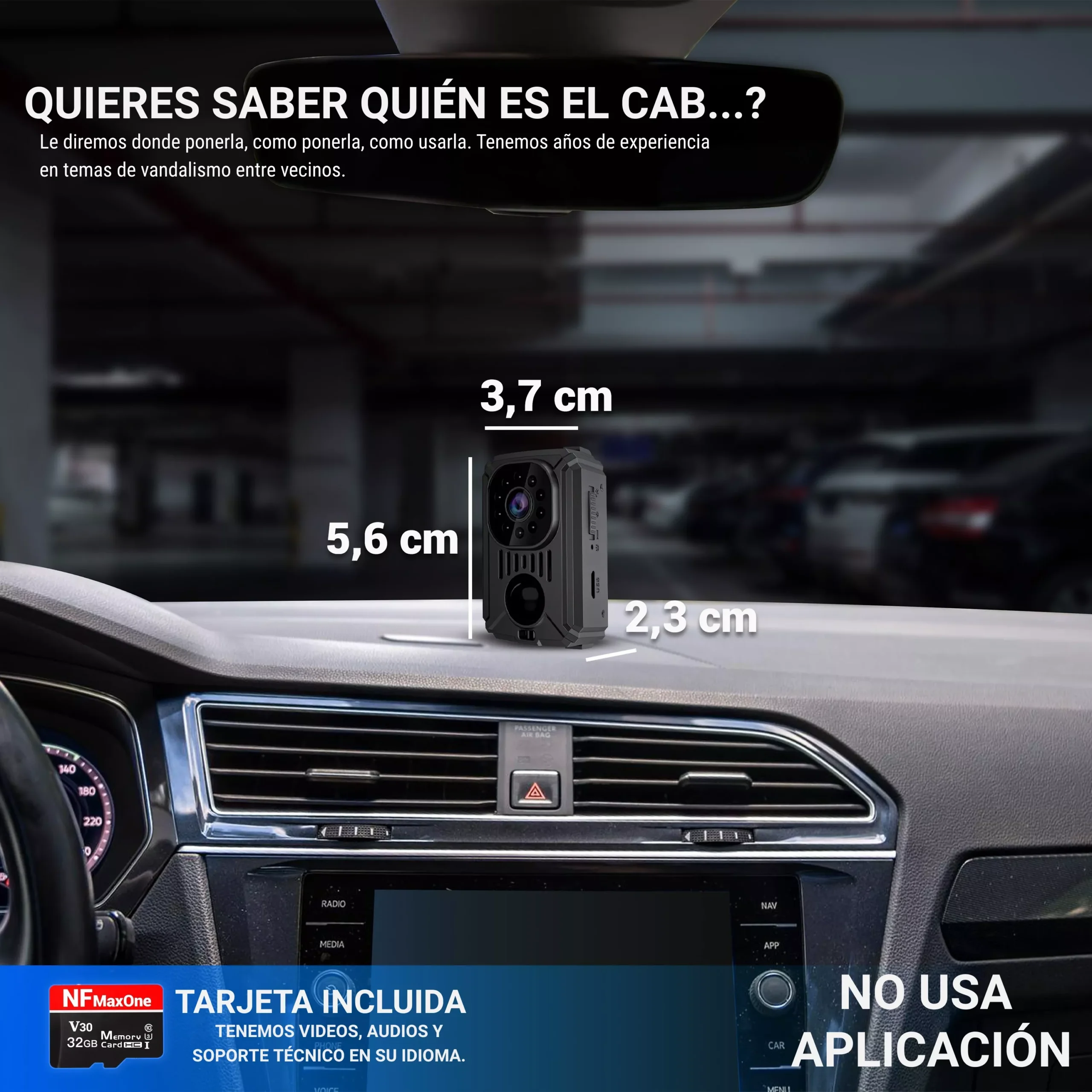 - ✅ VIGILE SU COCHE – HASTA 11 HORAS DE GRABACIÓN ✅. La cámara de vigilancia de coches, viene un soporte telefónico o por email para ayudarles a configurar la cámara. MIRE DENTRO DE LA CAJA. Antes de realizar una devolución, contáctenos. MICROSD 32GB INCLUIDA. Garantizamos que la mini cámara durará mínimo 11 horas de batería, con lo cual, podrá vigilar toda la noche su propiedad o coche.